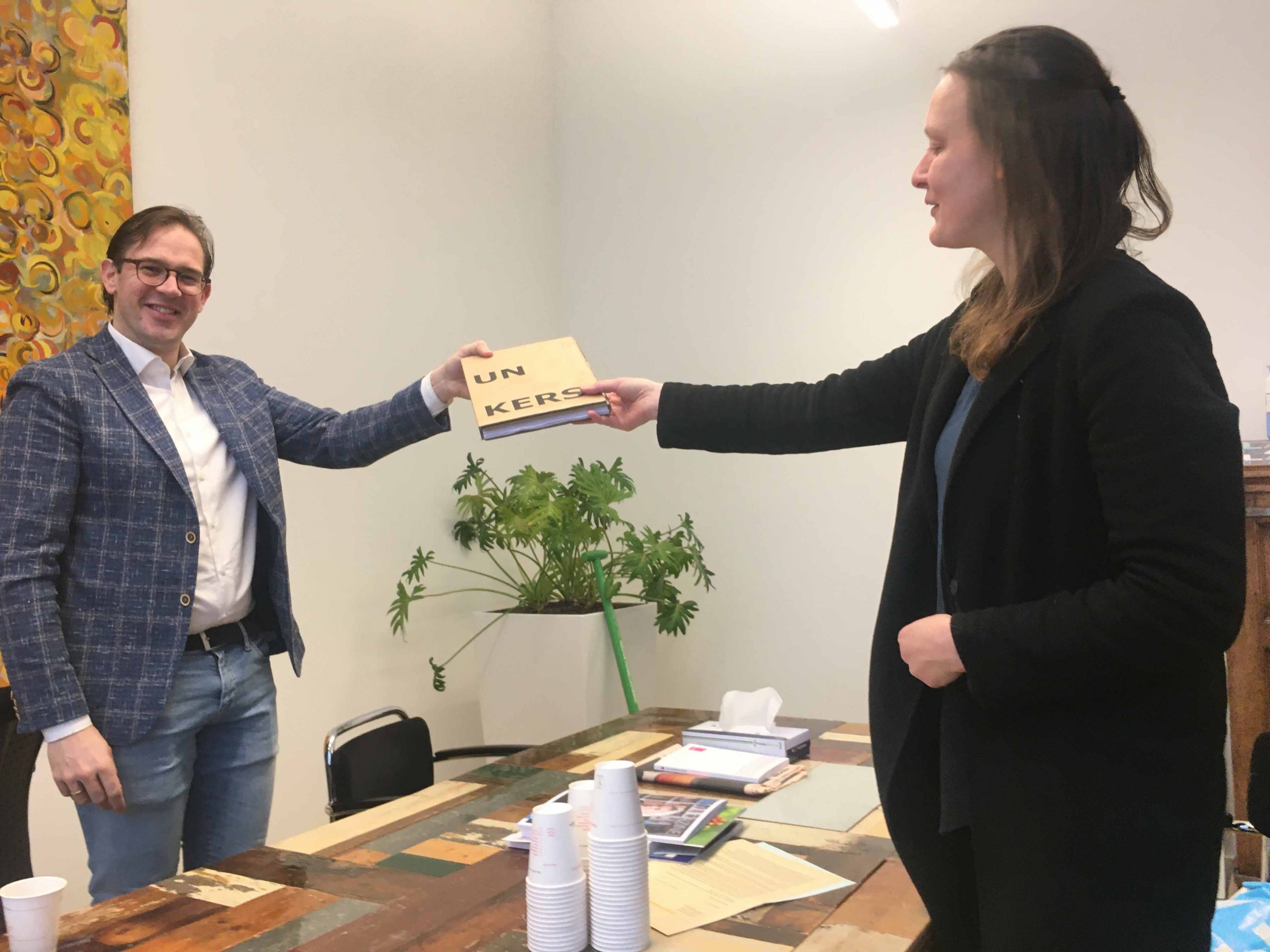 Wethouder Paul de Rook krijgt de petitie van Esther de Graaf
