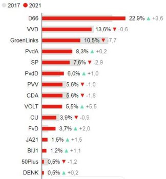 Een verliezer van deze verkiezingen lijkt de SP te worden. In de exit poll van Ipsos komt de partij uit op 8 zetels. Dat zijn 6 zetels minder in vergelijking met de verkiezingen van 2017. De nummer tien van de lijst, Jimmy Dijk, laat weten teleurgesteld te zijn. “Het is een grote tegenvaller. Ik denk dat de sympathie er voor ons echt wel was. Wij zijn de afgelopen weken met veel mensen in gesprek gegaan, coronaproof uiteraard. Uit die gesprekken werd voor mij duidelijk dat mensen nog aan het zoeken waren, waarbij nu blijkt dat wij niet de eerste keus waren.”