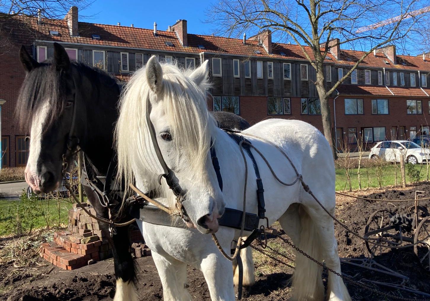 Ook dit jaar begon het moestuinseizoen van Stichting Toentje in Groningen weer op de ouderwetse manier. Het stuk akkerland van de stichting in de Oosterparkwijk werd voor de vierde keer omgeploegd met behulp van een drietal paarden.