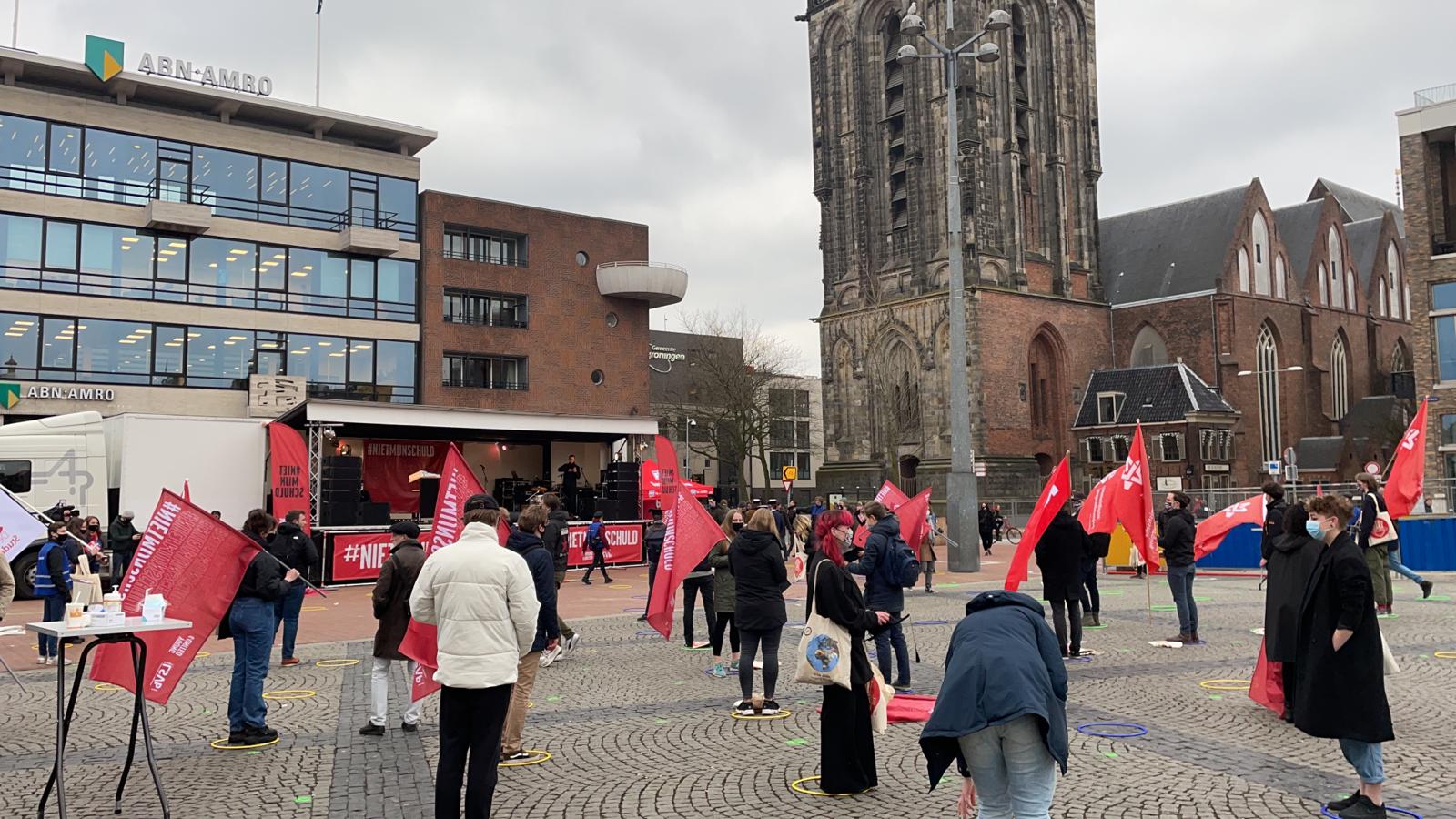 Vorige maand werd er in Groningen ook al actie gevoerd. “De studenten zijn enorm gemotiveerd”, zegt Bas van Weegberg van FNV Young. “Het leenstelsel is echt een schuldenmachine. Het zadelt de studenten op met een enorme schuld, nog voordat ze aan hun werkende leven kunnen beginnen. De arbeidsmarkt wordt ook steeds onzekerder en het is maar de vraag of ze na hun studie, snel, een baan kunnen vinden.” De demonstratie in Groningen is de eerste in een reeks van vier grote demonstraties. De komende dagen vinden er ook demonstraties plaats in Zwolle, Utrecht en Amsterdam. Op 15 maart vindt er in Wageningen een mars plaats waarbij studenten uit het hele land aanwezig zijn.