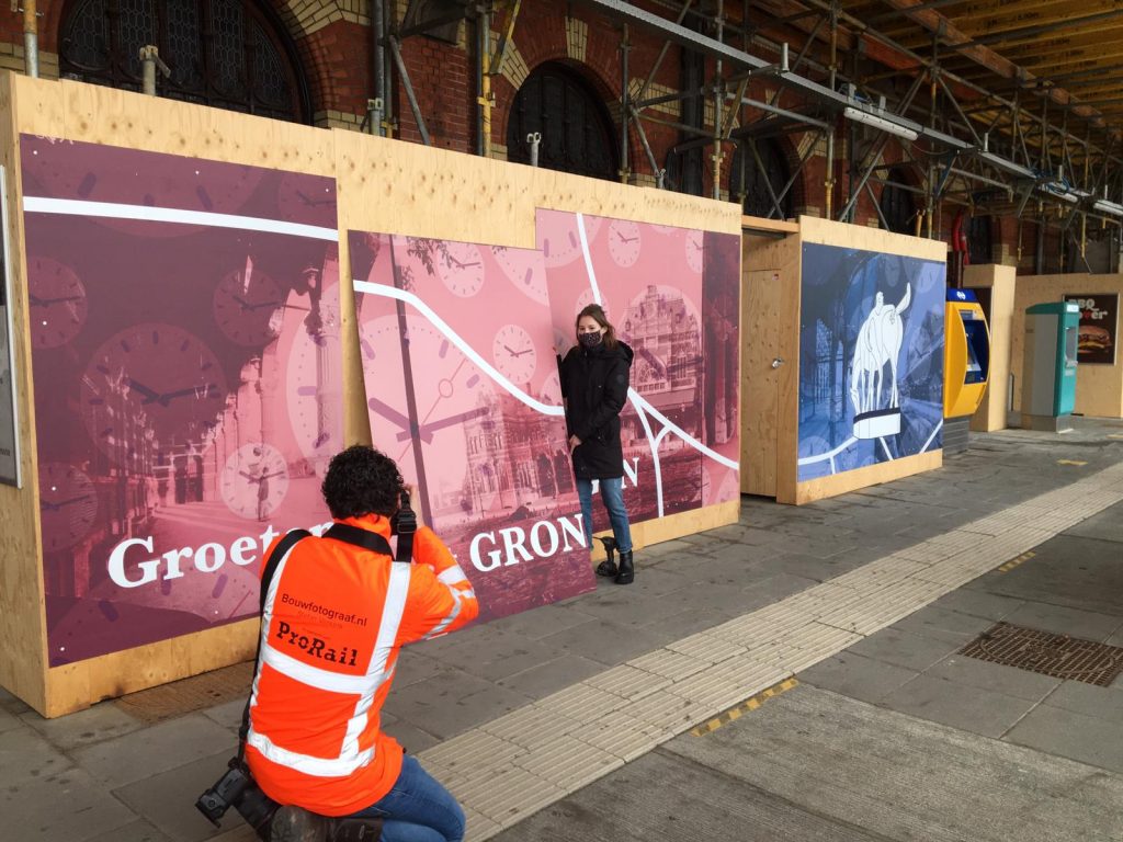 Een groep tweedejaars studenten Grafische Vormgeving van Academie Minerva kreeg als opdracht: maak een ontwerp dat de historie van het station en de huidige tijd met elkaar verbindt. Als basismateriaal kregen ze oude beelden van het station, afkomstig van de Groninger Archieven.