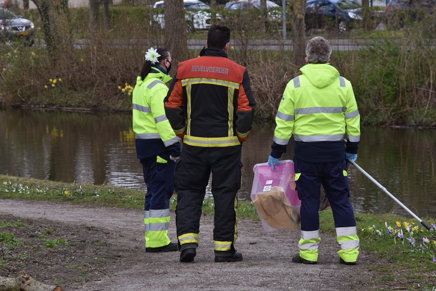 Toch betekent het niet dat de Dierenambulance Groningen niet de boel de boel laat. “Klaarblijkelijk zat er nog teveel energie in het dier. Je kunt er dan constant achter aan gaan, maar je kunt het beter in ogenschouw nemen. We zullen daarom de komende uren regelmatig langs de vijver rijden en komen in actie wanneer dat nodig is.”