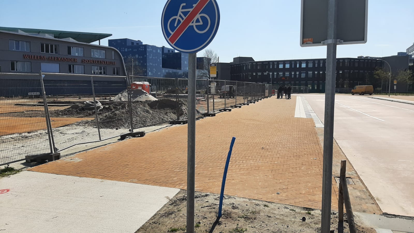 Op de Zernike Campus, naast het Willem Alexander Sportcentrum, is deze week een stuk nieuw aangelegd fietspad alweer opgebroken.