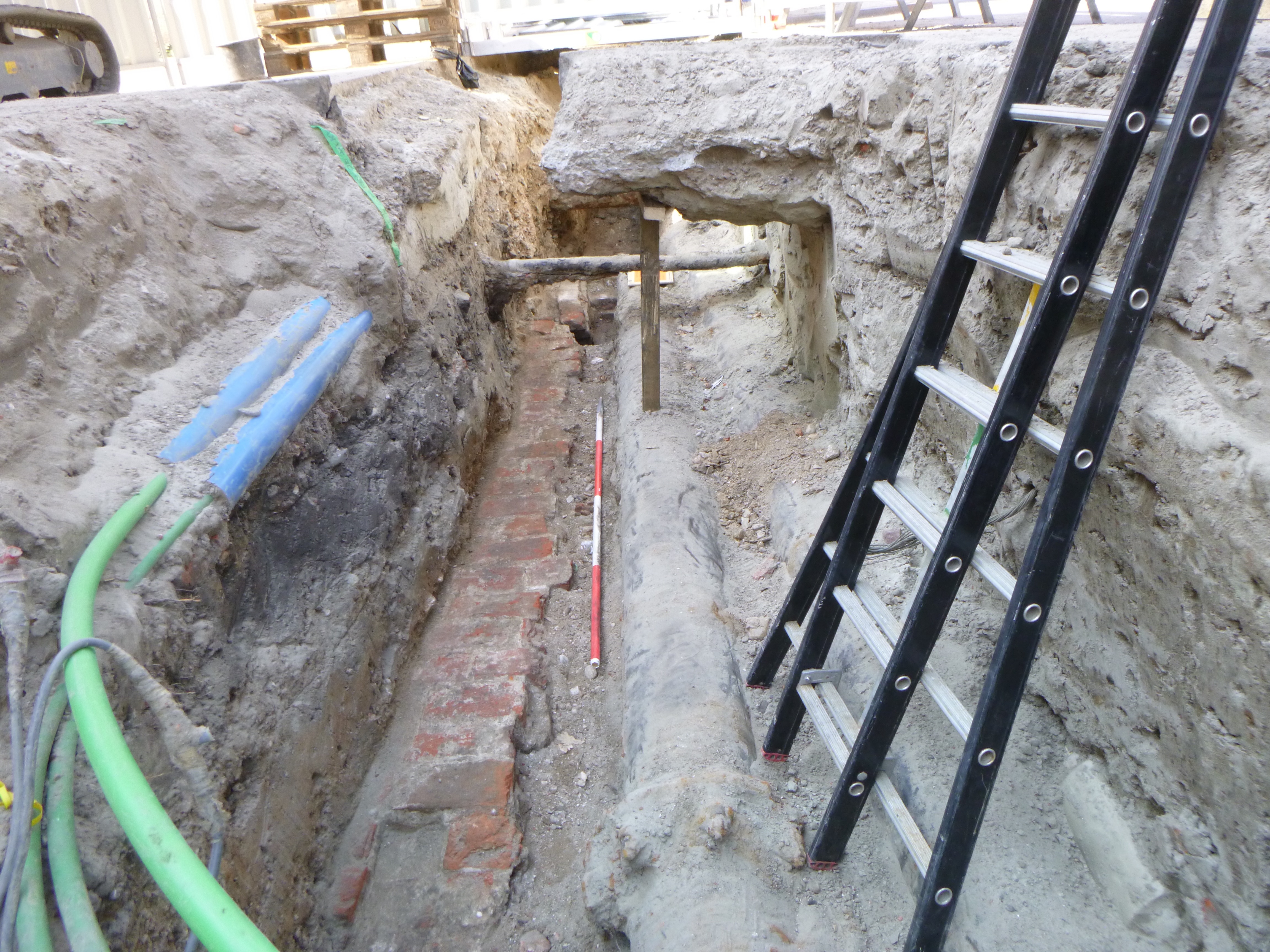 “De werkzaamheden op deze plek zijn vorige week begonnen. De samenwerking met de Antea Group is ook heel prettig. Wanneer energiebedrijf Enexis met werkzaamheden bezig gaat schakelen zij Antea in. Wat we nu te weten zijn gekomen is dat we te maken hebben met twee bouwfasen. We hebben een stukje bestrating gevonden en een stuk van de poort. De aansluiting ontbreekt echter. Waar we bijvoorbeeld een antwoord op hopen te krijgen is welke soort bakstenen er gebruikt zijn, en wat de grootte van de stenen is.”