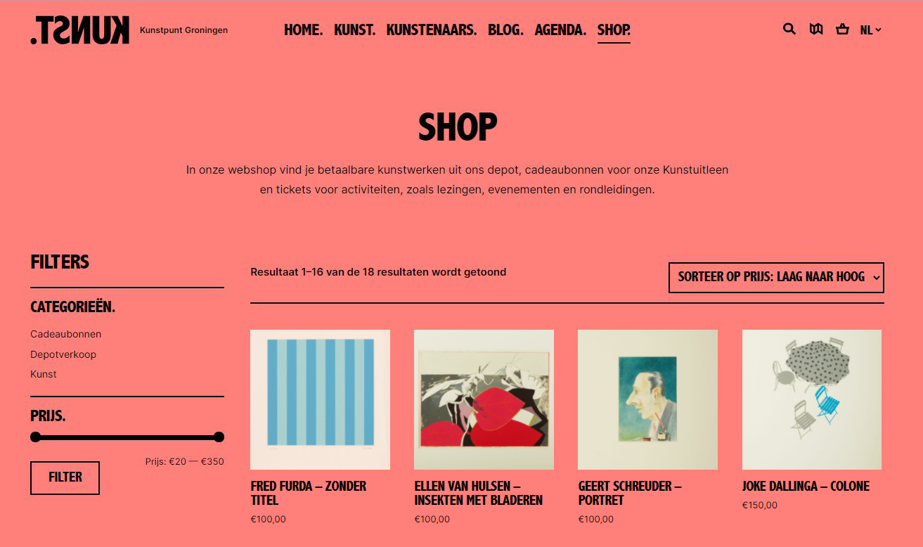 Na een nieuwe naam heeft Kunstpunt Groningen (voorheen het CBK) nu ook een webshop. Daarin gaan kunstwerken uit een depotverkoop van de Kunstuitleen voor minder dan tweehonderd euro de deur uit.