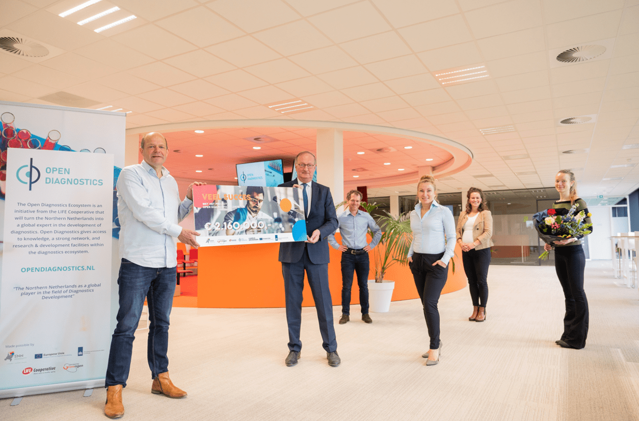 “Vanuit provincie, gemeente en het Samenwerkingsverband Noord-Nederland stimuleren we de innovatie- en economische kracht van bedrijven en organisaties”, vertelt gedeputeerde IJzebrand Rijzebol. “Er is veel vertrouwen in het Open Diagnostics Ecosysteem als drijfveer voor de ontwikkeling van nieuwe innovaties in Noord-Nederland. Ik ben daarom ook vereerd dat ik deze subsidie mocht overhandigen en wens de LIFE Cooperative veel succes met de uitvoering van dit project.”