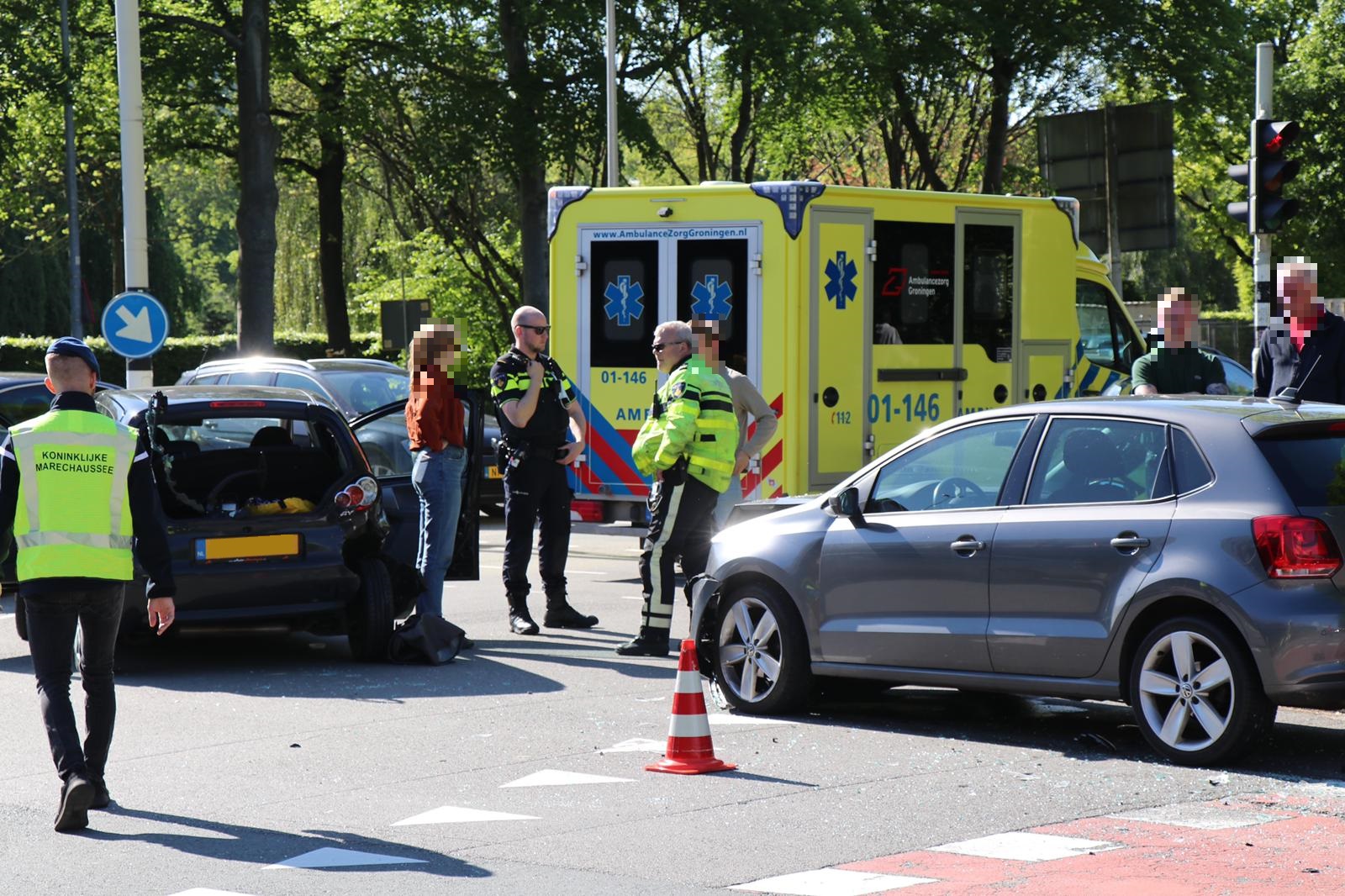 Hulpdiensten waren snel ter plaatse. “Een verpleegkundige van een motorambulance heeft een man gecontroleerd. Ambulanciers zijn zich gaan bekommeren om een bestuurster. Zij is na stabilisatie met onbekende verwondingen overgebracht naar het ziekenuis.” Door het ongeluk liep het verkeer helemaal vast. “Met name het autoverkeer vanaf de zuidelijke ringweg richting het Hoofdstation staat helemaal vast. Een agent van de Koninklijke Marechaussee probeert het doorgaande verkeer in goede banen te leiden.” Een bergingsbedrijf heeft de beide voertuigen weggesleept. De politie doet onderzoek naar de precieze toedracht.