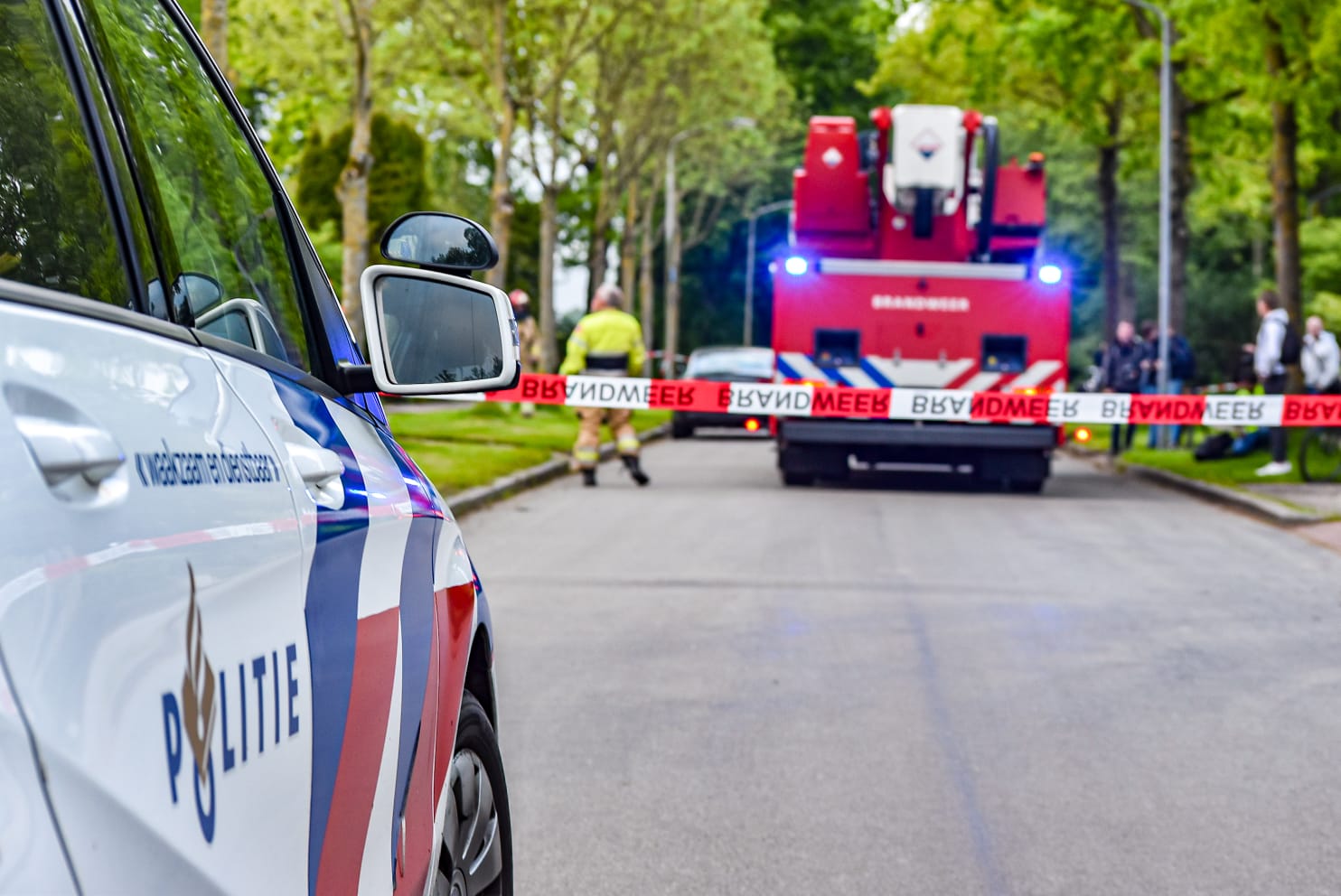 Vanwege de inzet van de hulpdiensten was de Oude Middelhorst in Haren tijdelijk afgesloten. Foto: Mike Weening – Weening Fotografie
