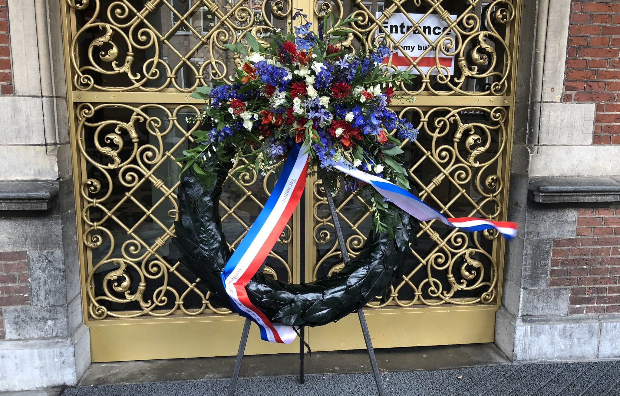 Het College van Bestuur van de Rijksuniversiteit Groningen legde dinsdagochtend een krans bij de hoofdingang van het Academiegebouw, aan de Broersstraat in Groningen.