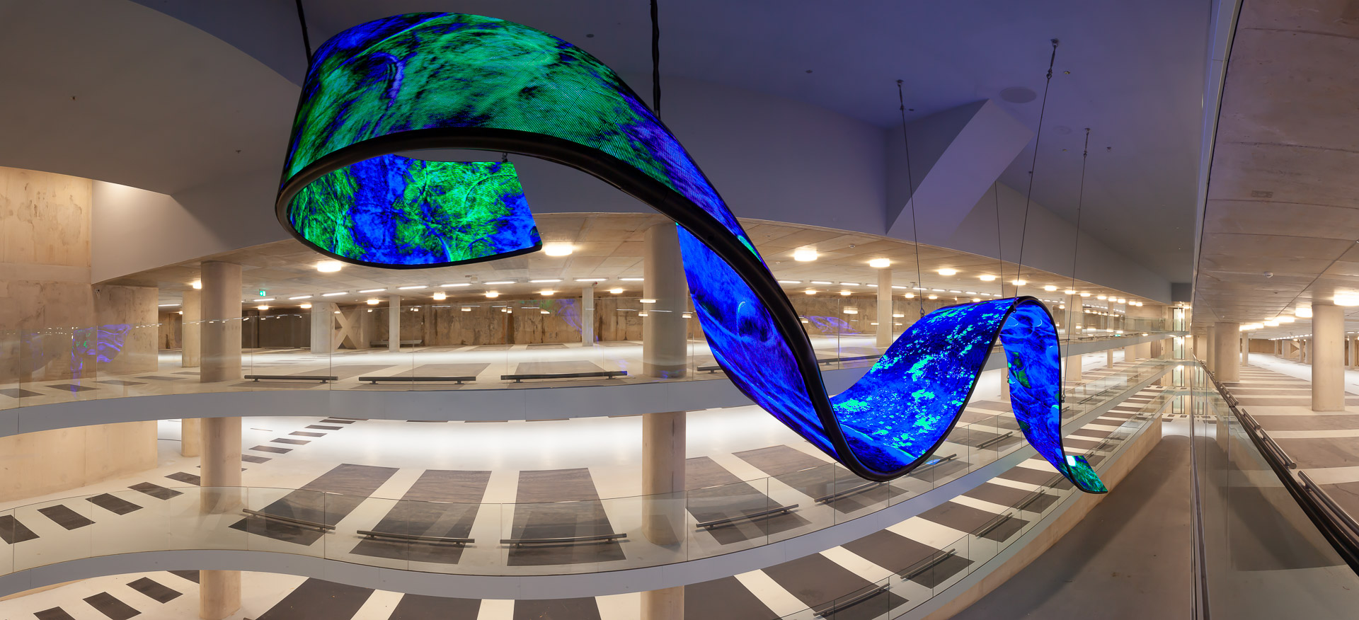 Kunstwerk Wervel, dat in de parkeergarage van het Groninger Forum is te vinden, is genomineerd voor een prestigieuze Media Architecture Biennale Award, MAB. Dat is zaterdagavond bekendgemaakt.