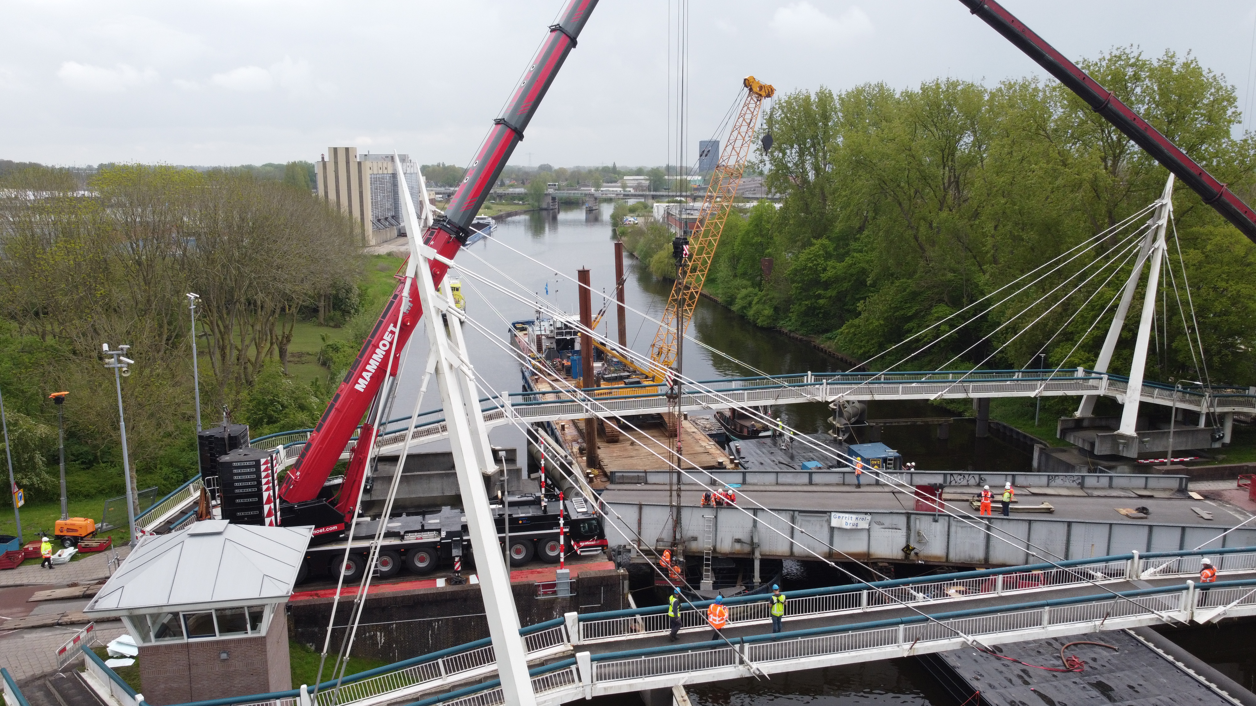 De loopbruggen voor voetgangers en fietsers volgen hoogstwaarschijnlijk op een ander moment. “We zetten alles op alles om vandaag te realiseren dat de scheepvaart door kan”, zo meldt Rijkswaterstaat op Twitter