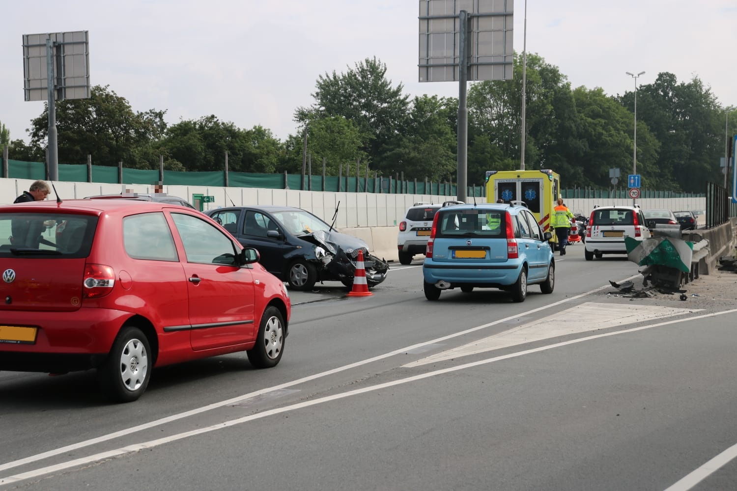 Het ongeluk gebeurde rond 09.45 uur ter hoogte van het Julianaplein. “Het gaat om een personenauto die uit de richting van Drachten kwam”, vertelt Wind. “Door nog onbekende oorzaak is de auto op een vangrail gebotst, is daarna weer de weg op geschoten en heeft daarbij een andere auto geramd.” Hulpdiensten waren snel ter plaatse. “Ambulanciers hebben de betrokkenen gecontroleerd maar niemand bleek gewond te zijn geraakt en niemand hoefde mee naar het ziekenhuis.”