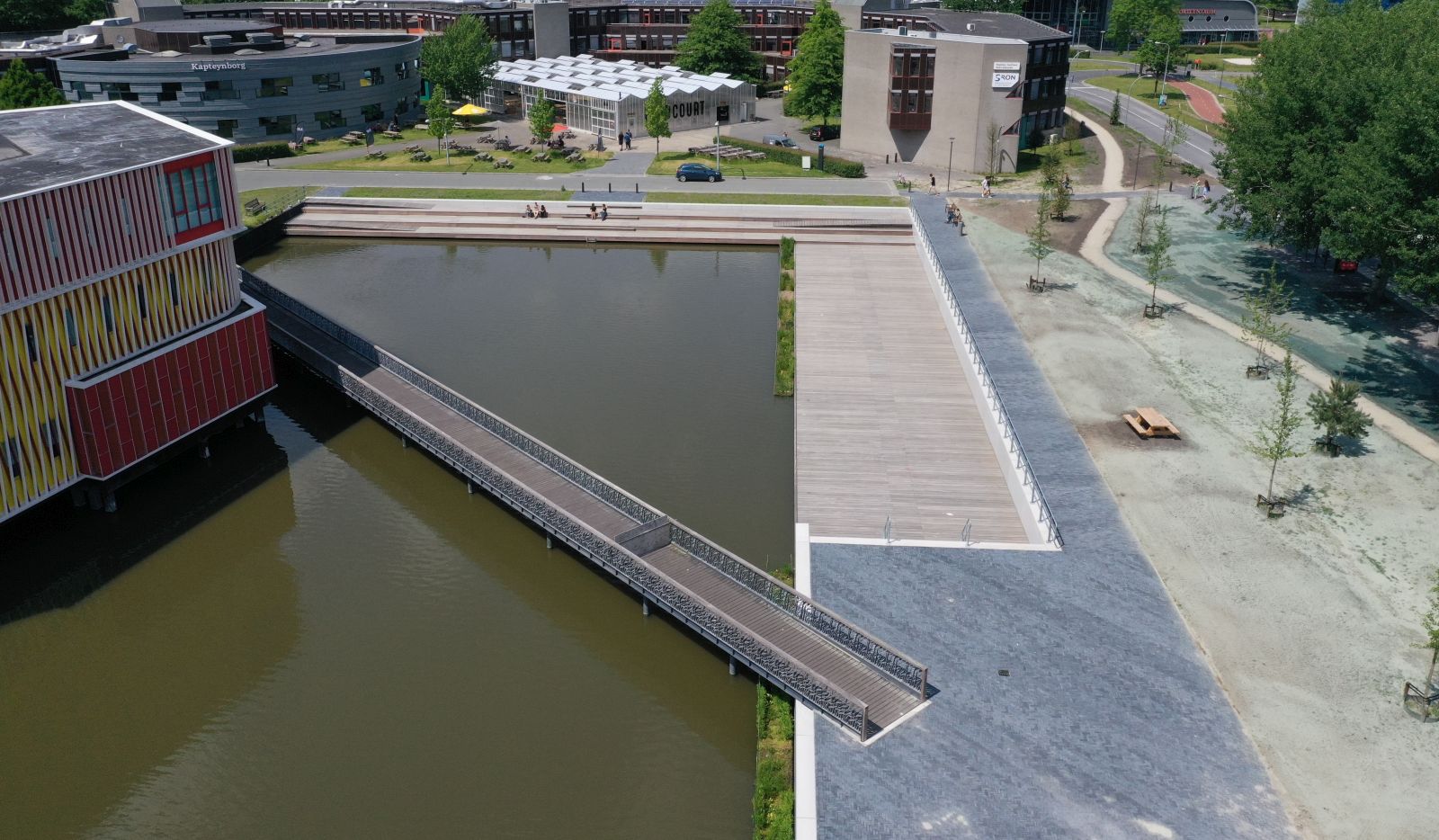 De Duisenbergvijver op de Zernike Campus in Groningen heeft een metamorfose ondergaan. Met een nieuwe flaneerboulevard een parkje, picknickbanken en een brede, rolstoeltoegankelijke vlonder over het water is het gebied omgetoverd tot een fijne plek om te verblijven.