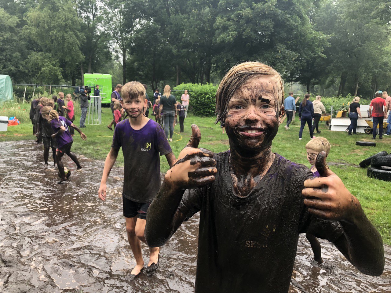 ‘Er is een survivalbaan, buikschuifbaan en de kinderen doen een spelletje modderestafette,’ legt Elte Hofman van SKSG uit. ‘Alles in de modder.’