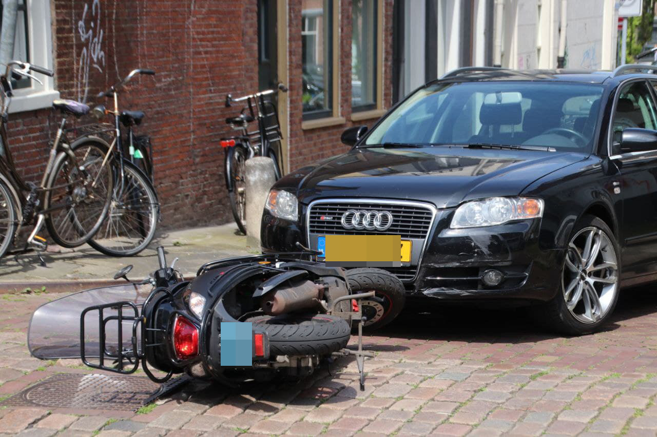 Op de kruising van de Hardewikerstraat en de Tweede Drift zijn vrijdagmorgen een scooterrijder en een automobilist met elkaar in botsing gekomen. Daardoor kwam de scooterrijder hard ten val.