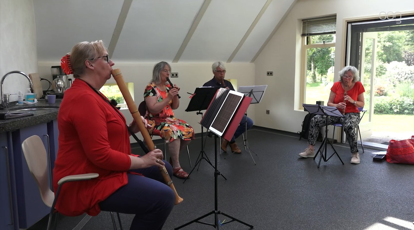 Ook in Glimmen hangt de spreekwoordelijke vlag uit. De blokfluitisten van Huismuziek Groningen produceren samen vrolijke noten, onder leiding van Hanny Geerlings. ‘De spelers, maar ook de dirigent, worden hier heel erg blij van. Iedereen kan zijn ei weer kwijt. Dat geldt voor ontzettend veel amateurmusici in het hele land,’ vertelt Geerlings.