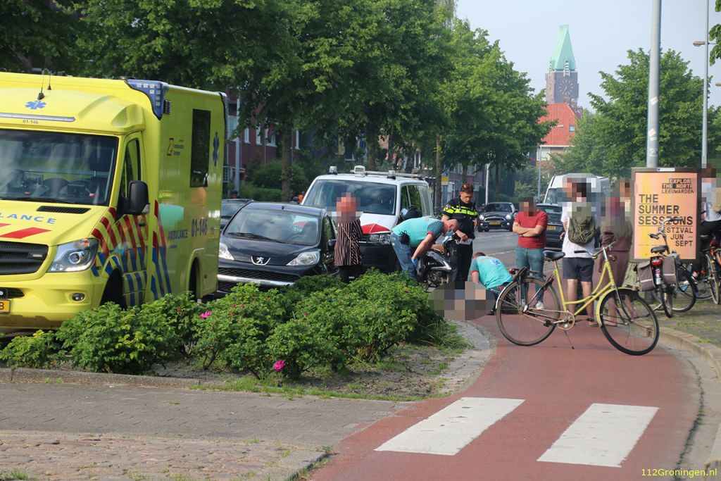 De vrouw kwam ter hoogte van het Bernoulliplein op het fietspad in botsing met een scooterrijder. Ze is met een ambulance naar het ziekenhuis gebracht.