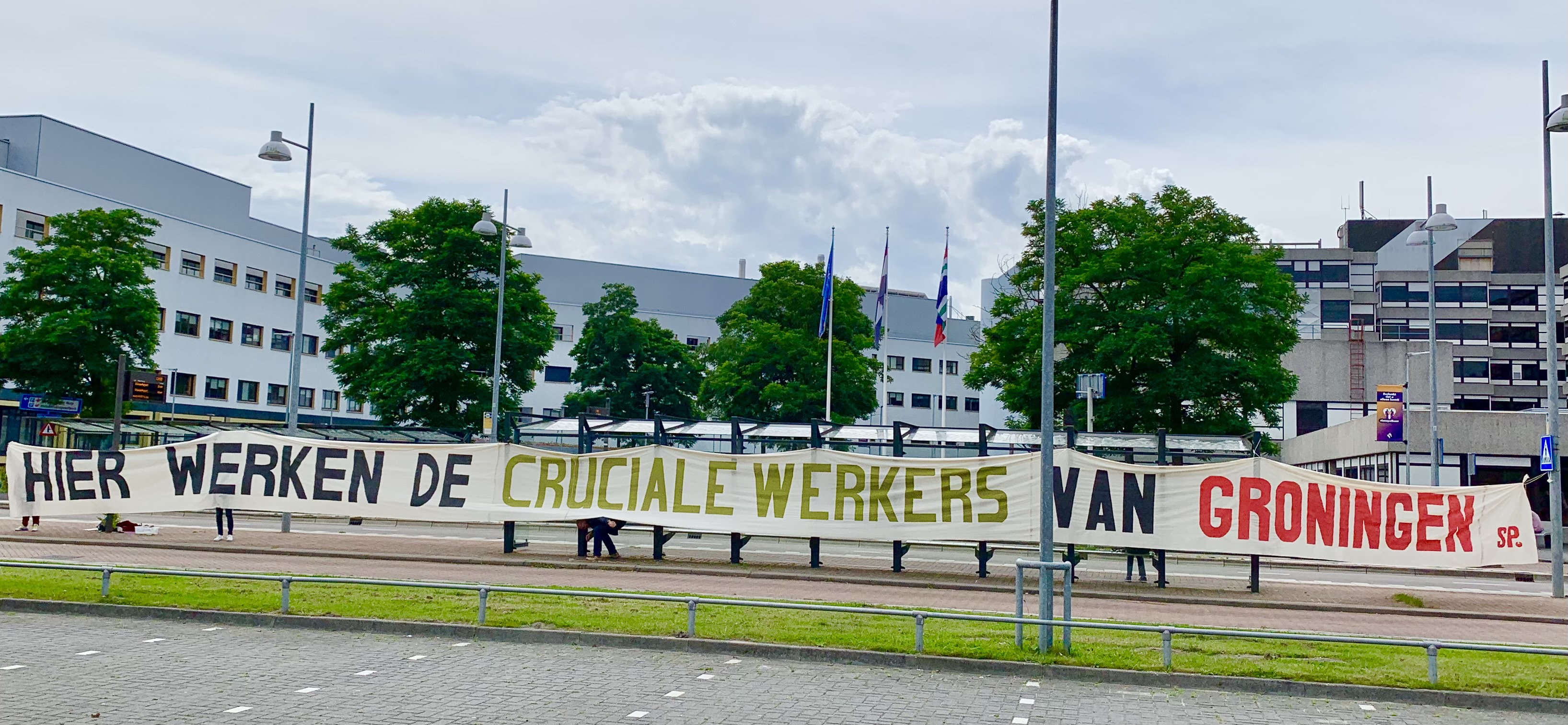 Eerder werden spandoeken onthuld bij het UMCG en het Hoofdstation. De SP wil meer van dit soort acties gaan voeren.