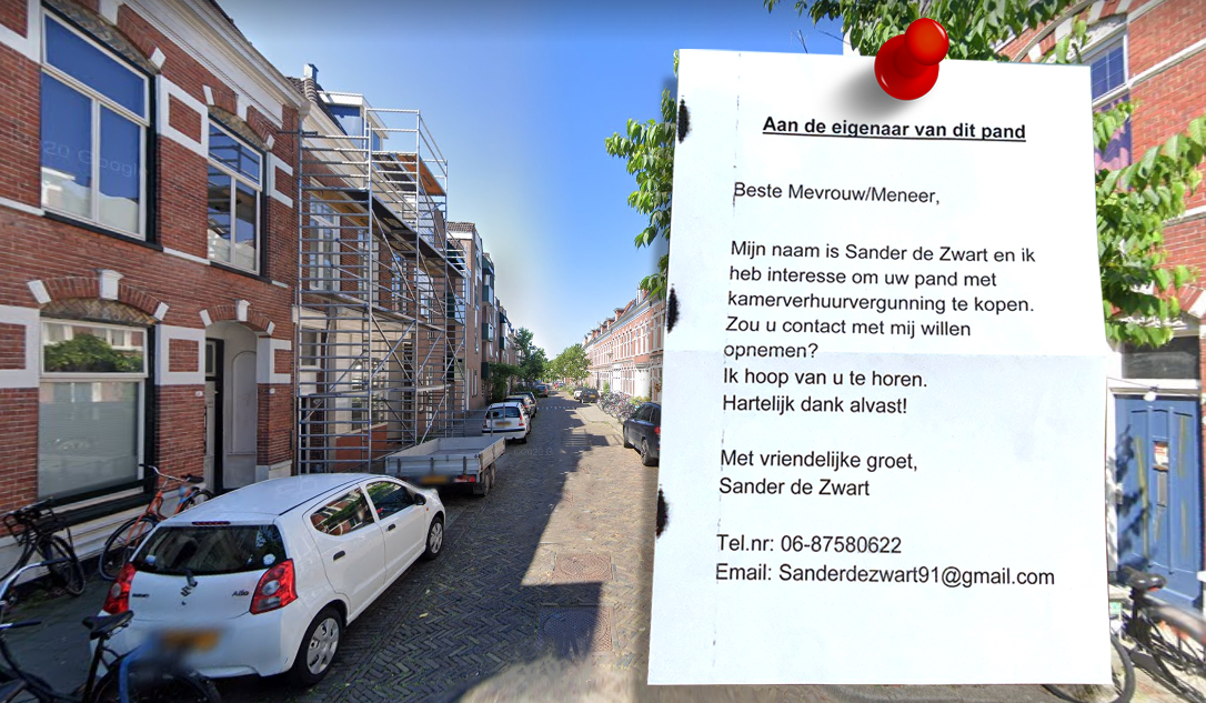 Bij een studentenhuis geeft De Jong de eventuele koper sowieso weinig kans. “Als ik geïnteresseerd zou zijn in het kopen van een studentenhuis zou ik gewoon even in het kadaster opzoeken wie de eigenaar van het pand is.”