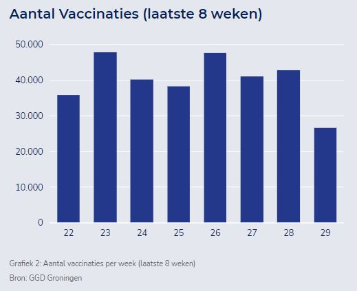 In de afgelopen week zijn er door de GGD 26.676 vaccinaties gezet. Sinds het begin van de vaccinatiecampagne, in januari, zijn er in de provincie nu 556.621 prikken gezet. Dit zijn zowel eerste als tweede prikken. Op dit moment worden er mensen geboren in of voor 1955 gevaccineerd, mensen geboren in 1961 tot en met 2003, medische risicogroepen, zorgpersoneel, dak- en thuislozen en vrouwen in de vrouwenopvang en sekswerkers en jongeren in de leeftijd van 12 tot en met 17 jaar.
