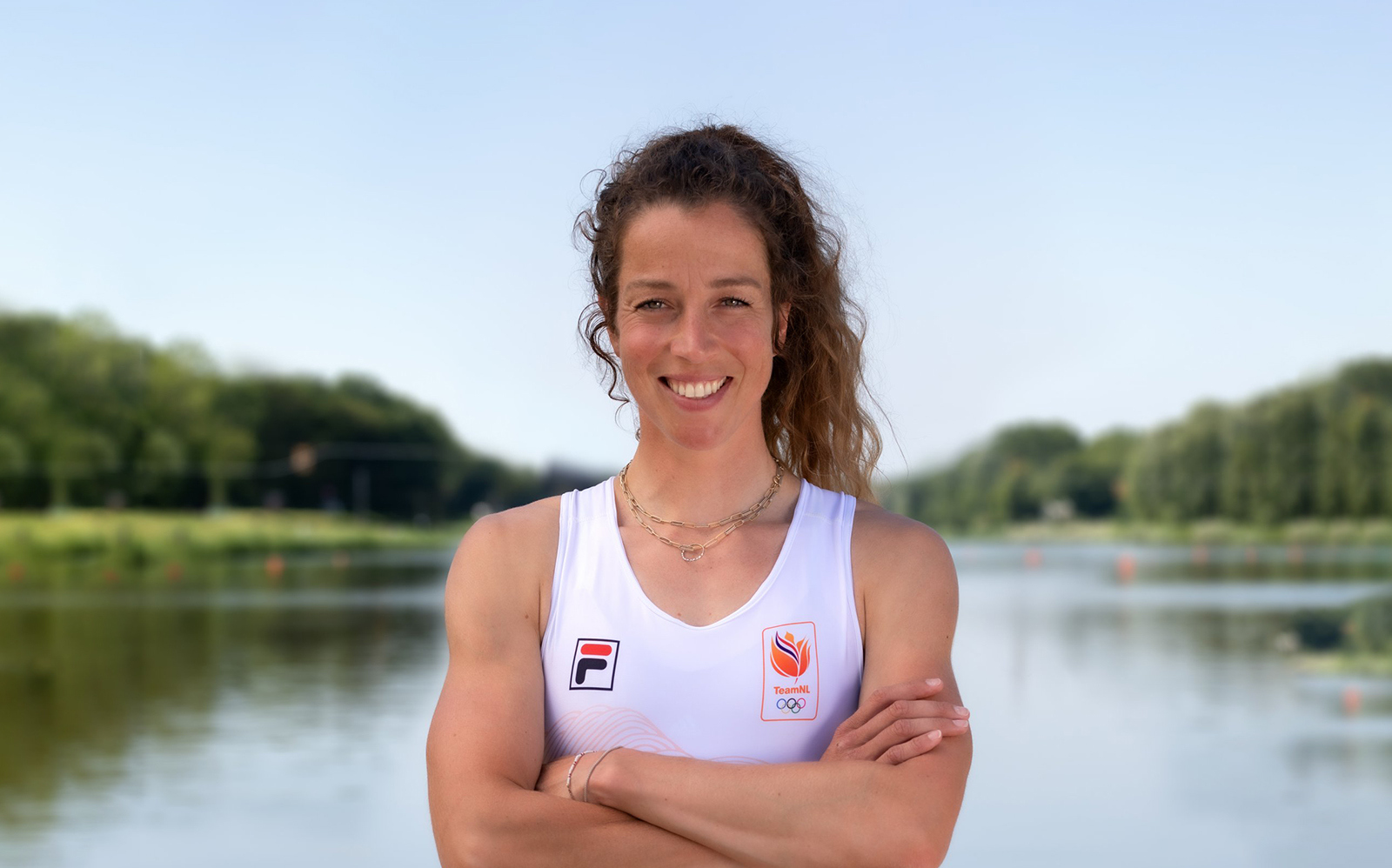 Roeister Sophie Souwer van roeivereniging Gyas uit Groningen is blij met haar zevende plek op de Olympische Spelen. In de skiff passeerde de 34-jarige roeister in de B-finale als eerste de finish in 7:25.96.