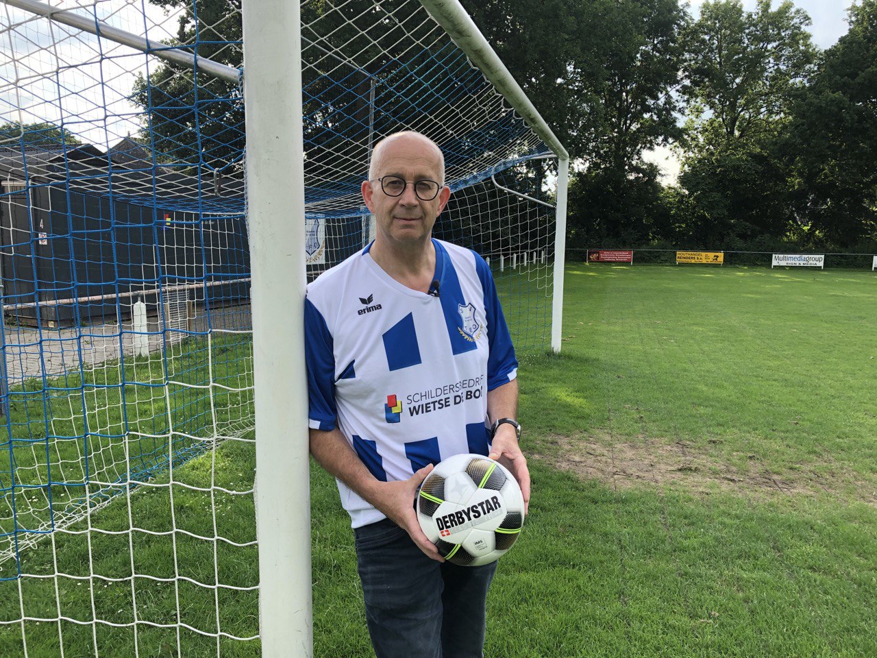 In een voetbalkantine annex dorpshuis in Ten Post verwelkomt De Vries ons. Op tafel heeft hij alvast wat oude foto’s en documenten tentoongesteld. ‘Ik ben bang dat er destijds gewoon weinig keus was en de keuze vrij willekeurig op blauw-wit gevallen is.’