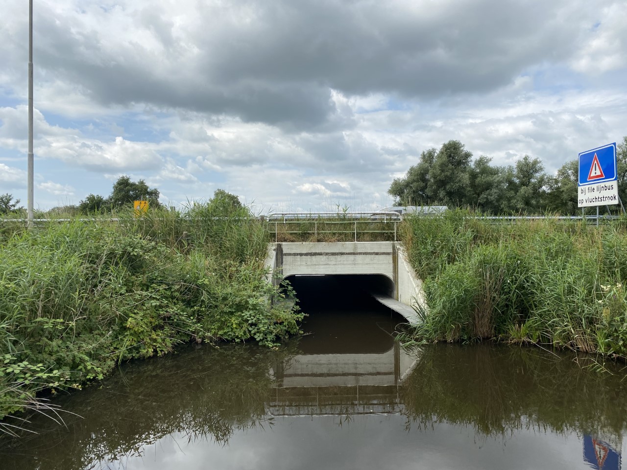 Dat is een tunnel die onder de weg doorgaat, waardoor onder meer otters, ringslangen, poelkikkers en waterspitsmuizen van het ene naar het andere leefgebied kunnen oversteken.