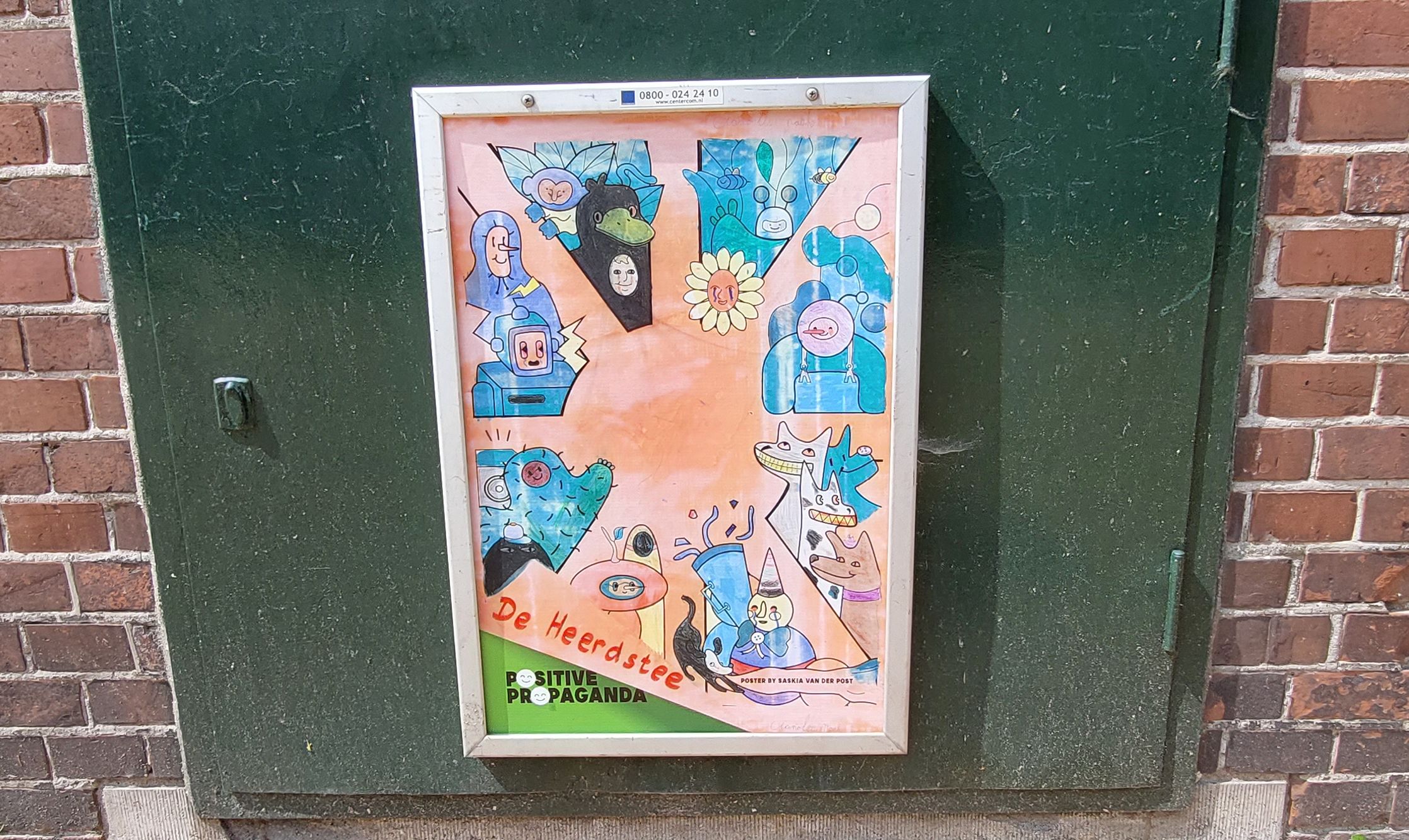 Op de website van Positive Propaganda staat een kaart met alle locaties en de video van alle ingekleurde posters. Zo’n 20 geplaatste posters nog niet ingekleurd. ‘Dus ook als je niet hebt meegetekend kun je alsnog meedoen. Doe wat kleurpotloden in je rugtas, ga op zoek en kleuren maar,’ zegt Arnoud Evenhuis, oprichter van Positive Propaganda.