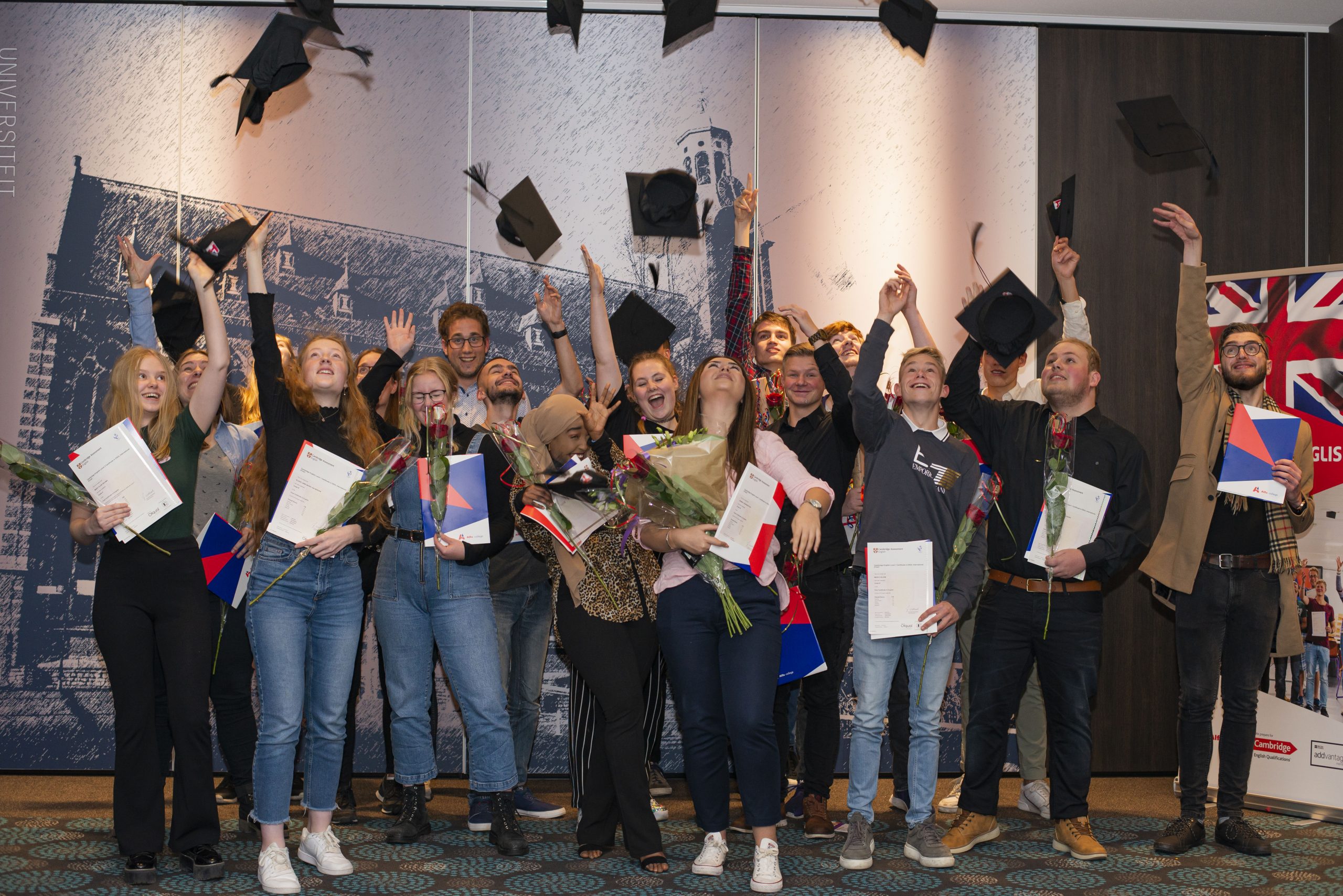 Een groep studenten van het Alfa-college die in 2019 hun diploma in ontvangst namen. Archieffoto: Alfa-college