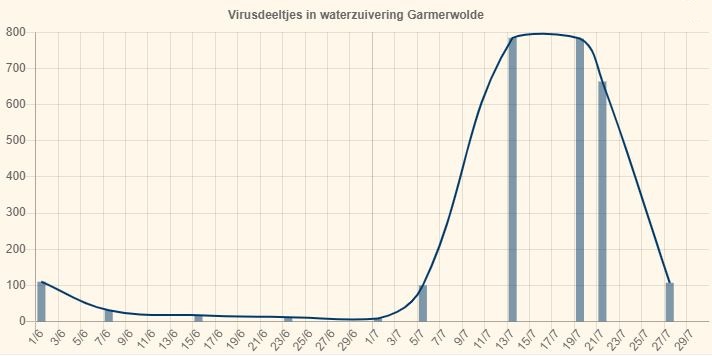 In en rond de gemeente Groningen worden de controles uitgevoerd in Garmerwolde, Eelde en Foxhol. Uit gegevens blijkt dat de controles op deze locaties nu eens in de week plaatsvinden. De laatste controle in Garmerwolde vond afgelopen dinsdag plaats. Toen werden er 107 coronavirusdeeltjes per millimeter vastgesteld. Een week eerder, op 21 juli, lag dit nog op 664 virusdeeltjes per millimeter. Als GGD’en een opleving signaleren kan er op deze locaties prioriteit worden gegeven aan het bron- en contactonderzoek.