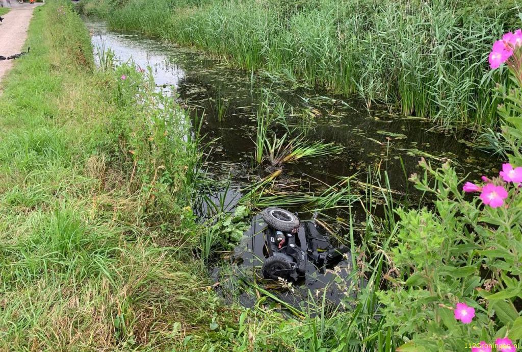 Omstanders hebben maandagmiddag een vrouw gered, die met haar elektrische rolstoel een sloot was ingereden langs de Moerweg in Haren.