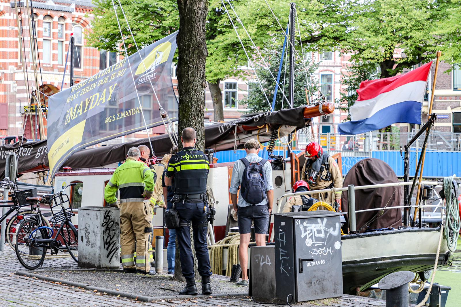De Groninger brandweer moest zaterdagmiddag in actie komen voor een mogelijke brand op een zeilboot van een studentenvereniging aan de Sluiskade in de binnenstad. Bij de brand raakte niemand gewond.