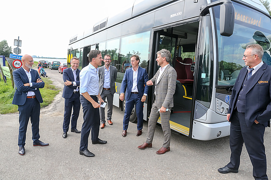 Rutte nam ook een kijkje in één van de waterstofbussen die Qbuzz sinds medio juni inzet in het streekvervoer. Met de opening van het waterstofstation kan Qbuzz het huidige aantal van twintig verder uitbreiden, iets wat het OV-Bureau graag wil. De twintig bussen in het streekvervoer moeten daarom snel worden uitgebreid met touringcars, zodat ook Q-liners op waterstof door Groningen en Drenthe kunnen gaan rijden.