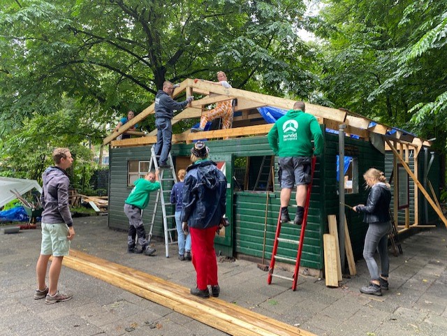 ‘Wij zetten ons vrijwillig in om projecten aan te pakken in de wijk Lewenborg. Door de coronacrisis konden we niet aan de slag in het buitenland maar het is gewoon fantastisch om je in te zetten voor een ander. Je hoort echt mooie verhalen.’ vertelt Jeroen, vrijwilliger van World Servants. De oude kinderboerderij in Lewenborg wordt omgebouwd tot een buurthuis zodat buurtbewoners elkaar makkelijker kunnen ontmoeten.