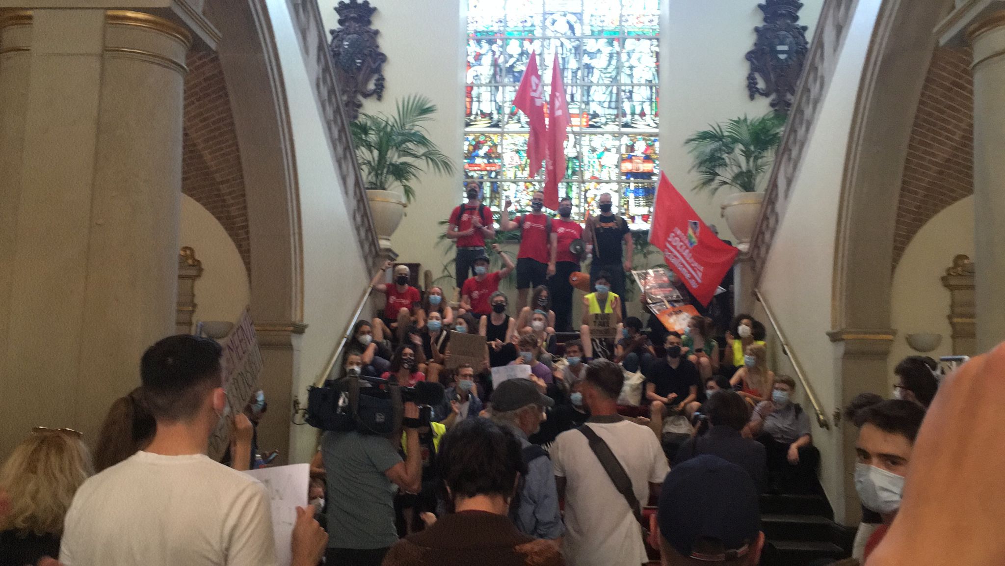 Ze gaan pas weg als er toezeggingen gedaan worden om de kamernood onder buitenlandse studenten op te lossen. De actie volgde na een demonstratie van enkele honderden studenten.
