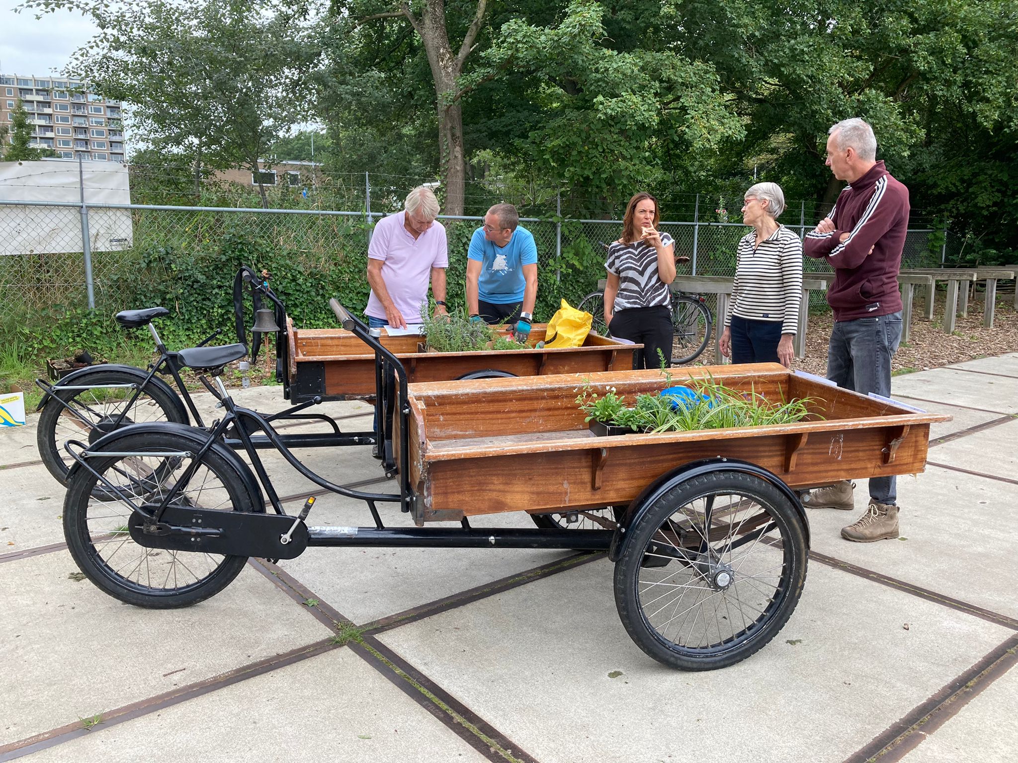 “We zijn heel enthousiast over het verloop van de dag”, vertelt Henk Hindriks van de organisatie. “Kijk, bij zulke acties wil je altijd meer. Maar als je je bedenkt dat we 25 aanmeldingen hadden en dat er vandaag overdag nog eens spontaan drie bij kwamen, dan kunnen we heel erg tevreden zijn.” Bij de actie reden vrijwilligers op bakfietsen, voorzien van een ouderwetse bel, door de wijk. “De helft van de bakfiets werd bezet door planten, de andere helft van de bakfiets was leeg. De bedoeling was om gaandeweg de dag alle planten kwijt zien te raken en om met een bakfiets vol tegels weer terug te komen.”