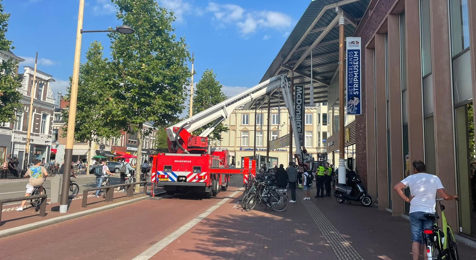 Brandweerlieden hebben donderdagmiddag een hoogwerker ingezet om een duif te bevrijden bij de vestiging van McDonalds aan de Westerhaven.