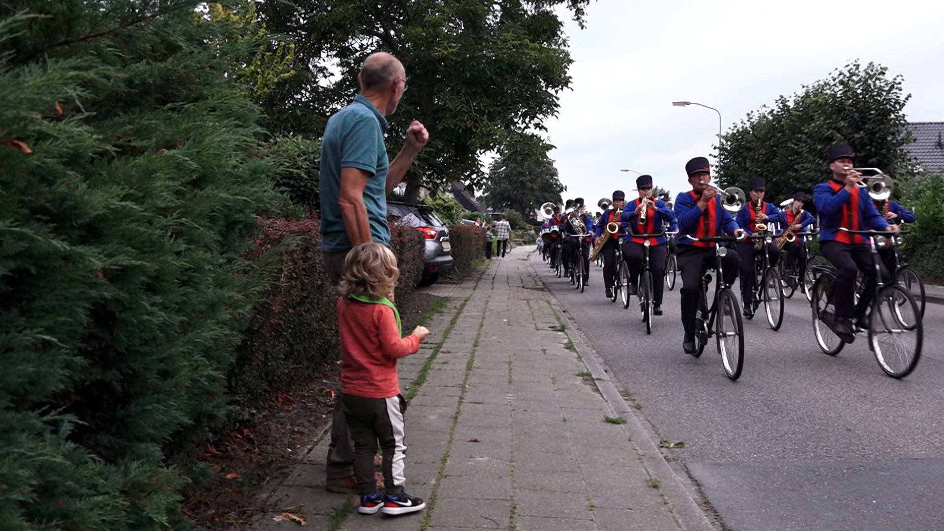 Even voor half zeven verzamelen de eerste Ten Boersters zich al nieuwsgierig op straat. ‘Sta ik hier goed? Komen ze hier zo langs?,’ vraagt een man aan een verkeersregelaar. De man staat goed. Fiets muziekkorps Crescendo komt hier zo langs.