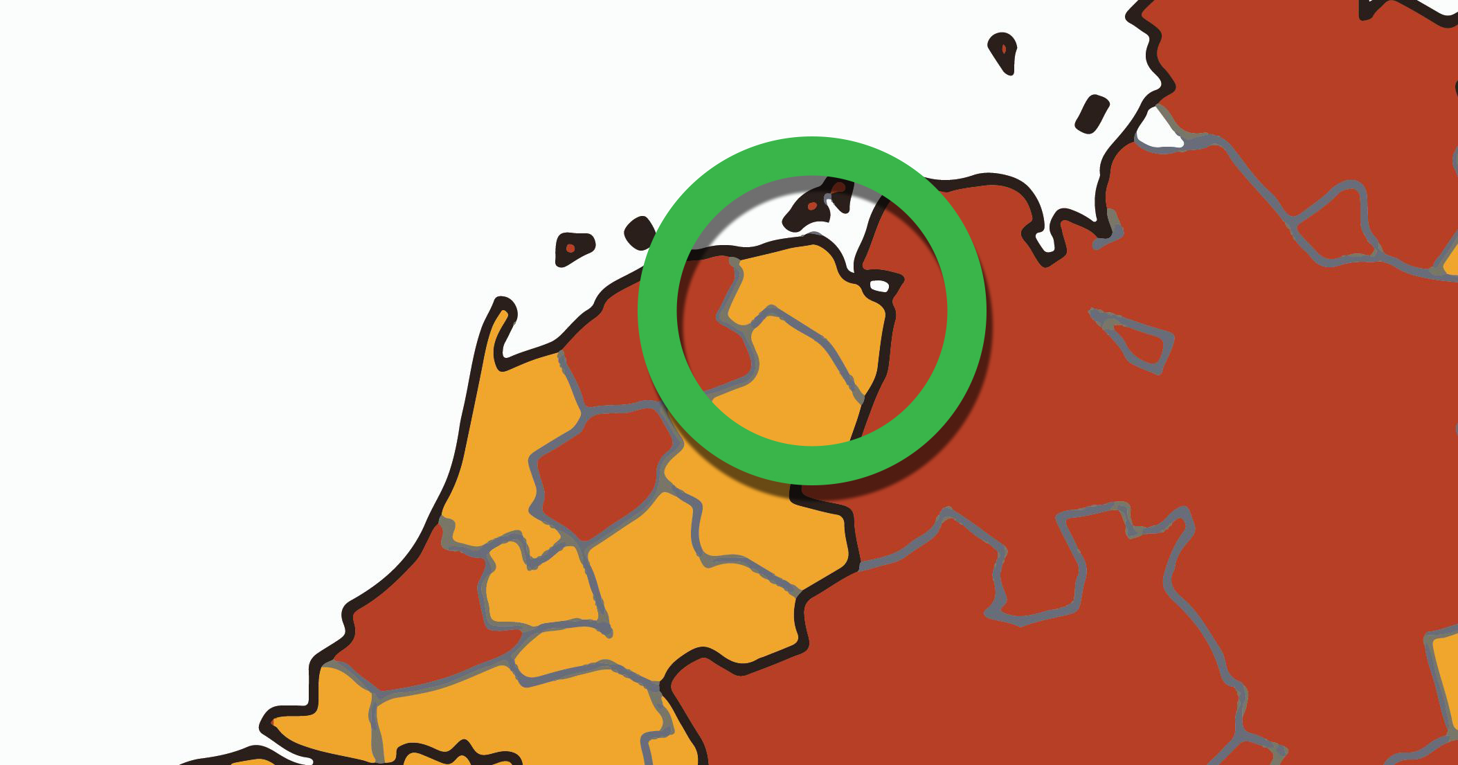 De provincie Groningen kleurt sinds donderdag weer oranje op de Europese coronakaart van het ECDC, de Europese variant van het RIVM. Het aantal nieuwe besmettingen is voldoende gedaald in de provincie om een lager risiconiveau toe te kennen.