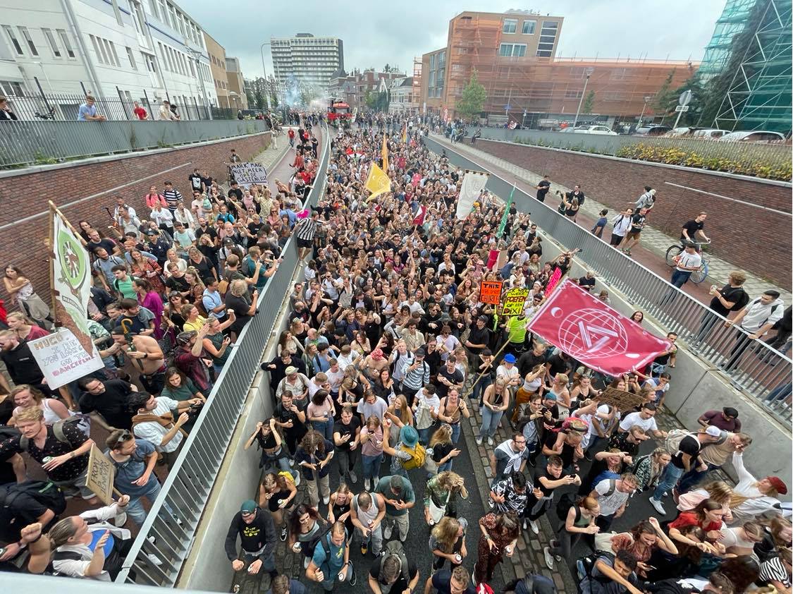 De protestparade trekt door de binnenstad. Video: Annelies van Santen