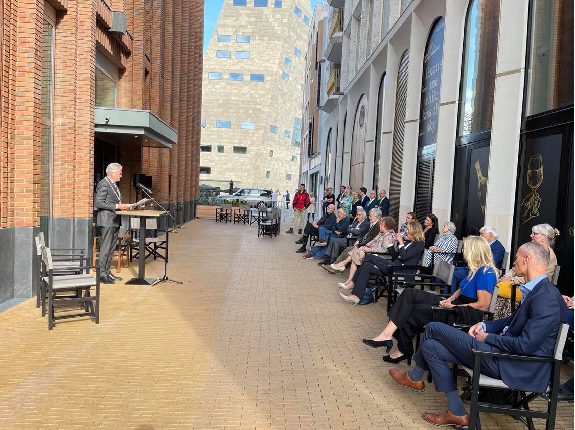 Met een korte ceremonie is maandagmiddag de Scholtenhuis-plaquette teruggeplaatst aan de oostzijde van de Grote Markt. Vanwege de herinrichting van het gebied was de plaquette in 2013 weggehaald.