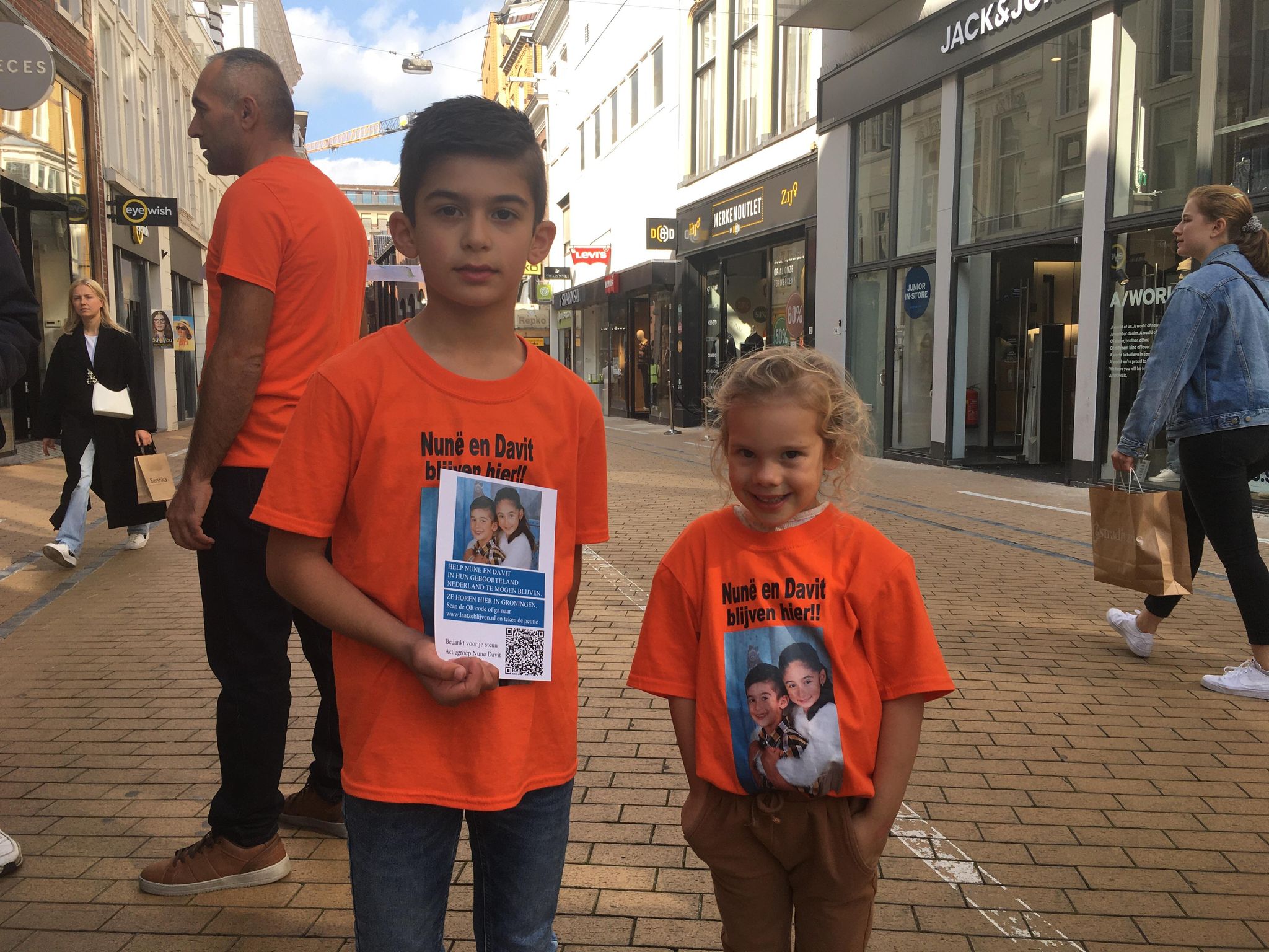 De strijd voor Davit en Nunë gaat nog steeds onverminderd door. Samen met hun vader en Nederlandse familie gingen ze woensdag nog een laatste keer flyeren om mensen op te roepen naar hun protest te komen.