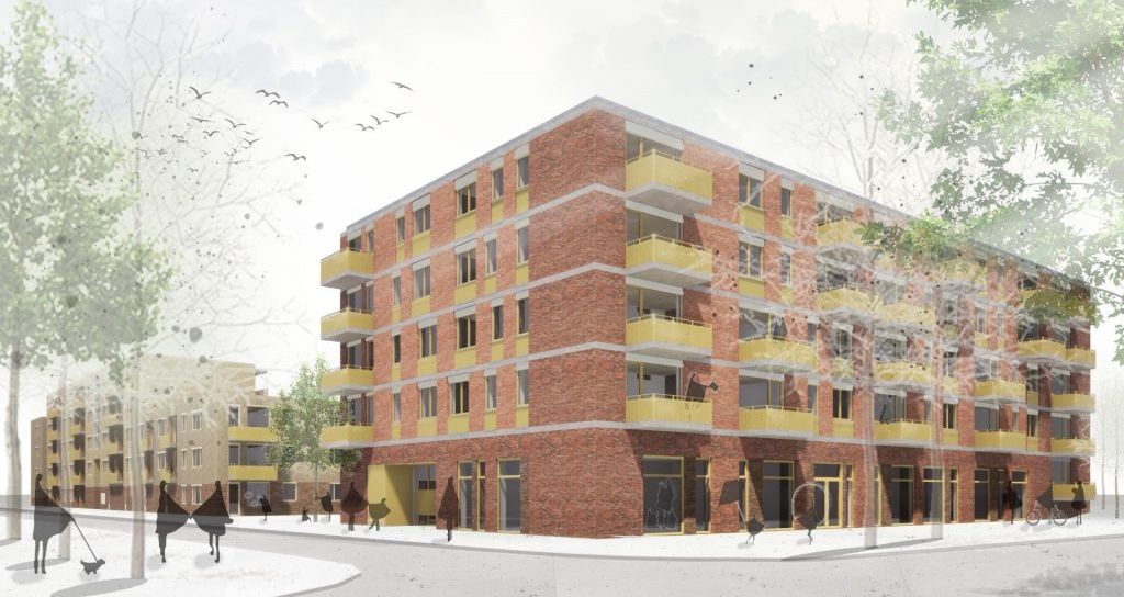 Een impressie van het nieuwe wooncomplex aan de Eikenlaan, gedeeld door de gemeente Groningen.