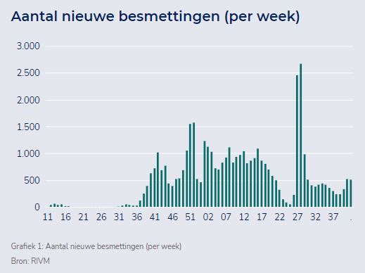 Sinds vorige week woensdag zijn er in de provincie 652 nieuwe besmettingen bijgekomen. “Dit aantal is een lichte stijging ten opzichte van de week hiervoor, toen er 605 besmettingen werden geregistreerd. De besmettingsgraad ligt in onze regio op 113 gevallen per 100.000 inwoners. Dit aantal ligt ruim onder het landelijk gemiddelde van 211 per 100.000 inwoners. Het aantal ziekenhuisopnames is iets afgenomen naar 6,8 per 1.000.000 inwoners.”
