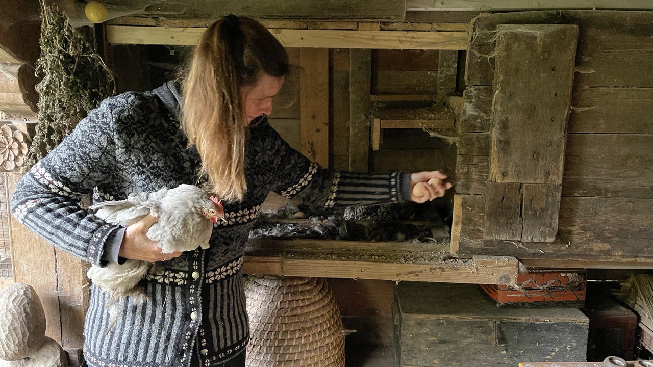Bij dorpsgenoot Marleen Schönherr gaat het wel goed, maar dat is meer geluk dan wijsheid. De kippen leven daar al jaren in een hok met afgesloten en afgedekte ren. ‘U mag gaan kijken, maar ik ben aan het werk, dus ik kan niets voor u betekenen.’ Schönherr zet haar telefoongesprek voort, terwijl wij de kippenhuisvesting inspecteren.