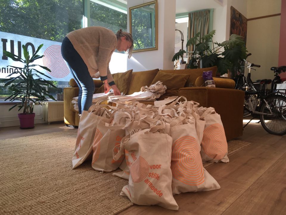 Zondag gaan vrijwilligers bij de 4 Mijl tasjes en tijdschriften verkopen om zo geld op te halen.
