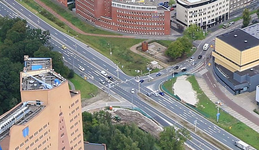 De provincie Groningen heeft de verkeerslichten op de kruising van de westelijke ringweg met de Concourslaan en de Leonard Sprengerlaan aangepast. Het verkeer moet daardoor langer voor rode stoplichten wachten.