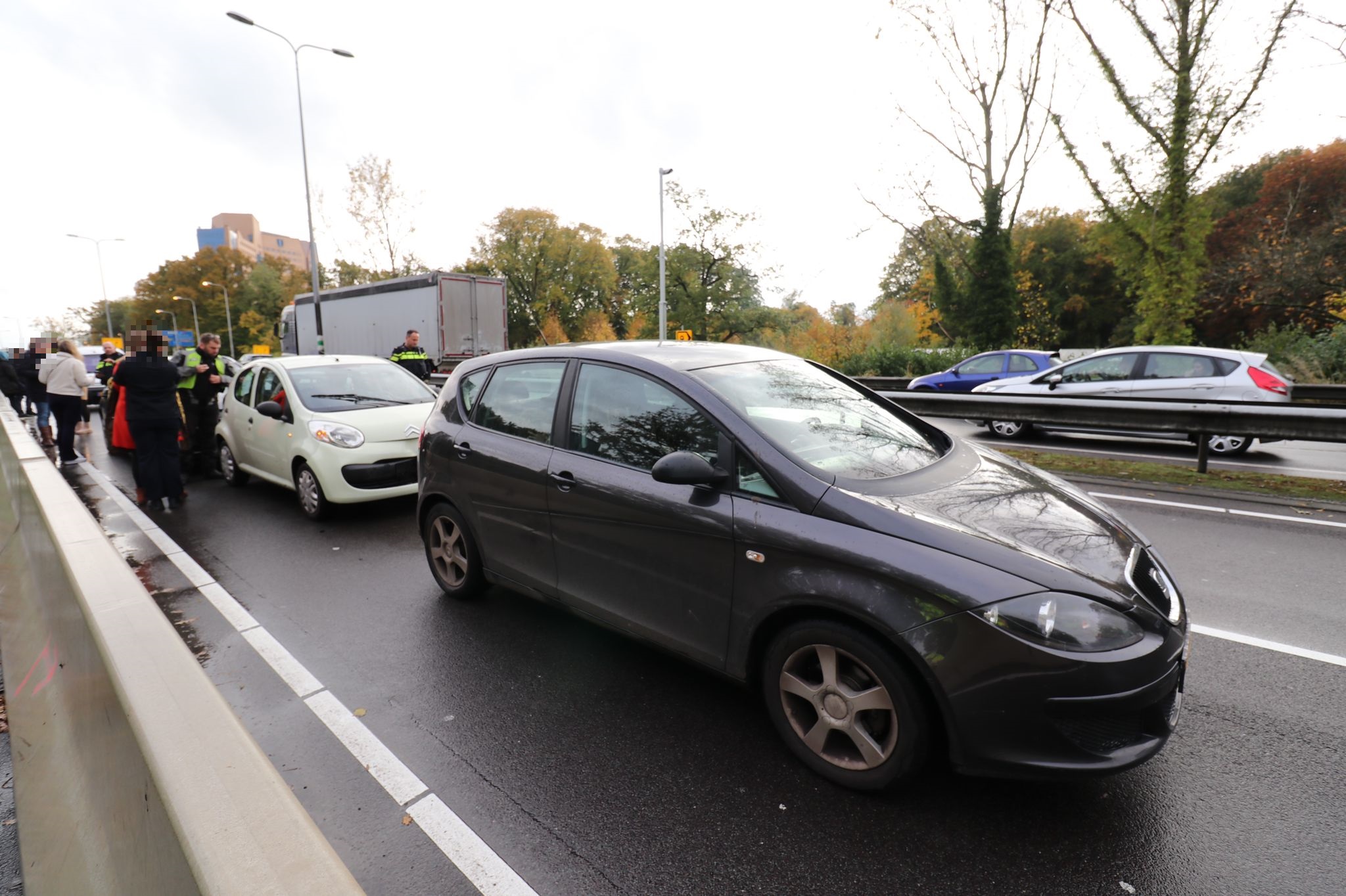 Bij een verkeersongeluk zaterdagmiddag op de westelijke ringweg zijn vijf auto’s op elkaar gebotst. Dat meldt incidentenfotograaf Rick ten Cate van tencatefotografie.nl.