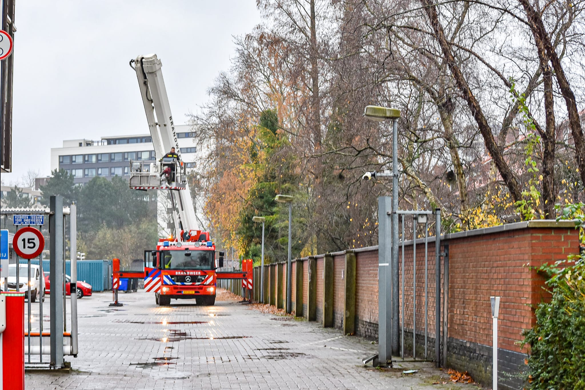 De melding van een dier in problemen kwam even na 12.00 uur bij de hulpdiensten binnen waarop een hoogwerker ter plaatse werd gestuurd. “Het duurde even voor de brandweer in actie kon komen”, vertelt Weening. “Het dier bevond zich in een boom op een terrein achter een mbo-instelling. Men moest wachten voor de beveiliging ter plaatse was. Nadat deze een hek hadden geopend kon de brandweer bij de boom komen.”