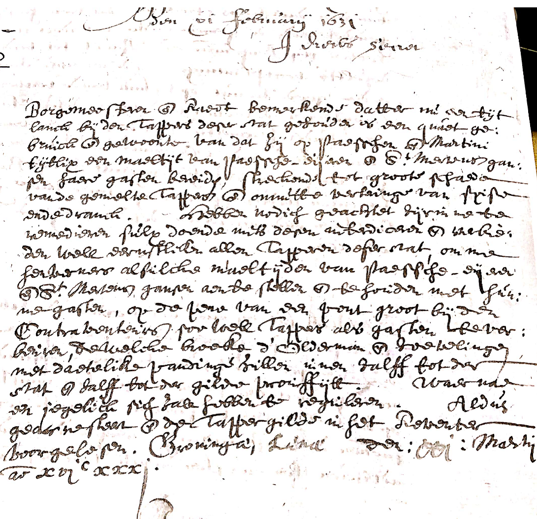 In 1631 besloot de gemeenteraad dat het bereiden van ganzenmaaltijden voor burgers in tapperijen verboden werd. De maaltijden leidden in die tijd tot veel overlast en zorgden voor schade bij tapperijen. Schuiling maakte het besluit bekend tijdens de Sint Martinusbenefietmaaltijd maandagavond in de Martinikerk.